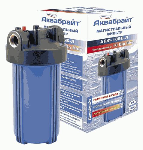 Фильтр магистральный 10" ББ АКВАБРАЙТ (Подкл.лат.резьба 1" ключ в комплекте) АБФ-10ББ-Л