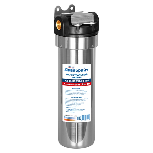Фильтр магистральный 10" АКВАБРАЙТ АБФ-НЕРЖ-12-ПЛ, нержав. сталь с пластиковой крышкой