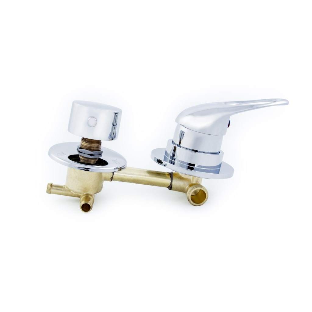 Встраиваемый смеситель с жестким соединением для душевой кабины на 3 режима без термостата. Поставляется в заводской сборке с металлическими хромированными ручками и монтажными креплениями (прижимными гайками). Подключение горячей и холодной воды, а также подключение узла переключения режимов выполнено под гайку. Расстояние между центрами ручек - 100 мм. Смеситель на 3 режима используется для переключения на тропический душ, ручную лейку и гидромассажные форсунки.