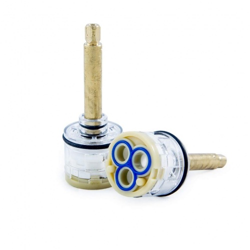 Корпус картриджа изготовлен из изностойкого пластика, устойчивого к перепадам температуры воды. Шток выполнен из латуни, рабочие диски — керамические, благодаря чему картридж надежно защищен от вредного воздействия жесткой воды. Конструкция картриджа спроектирована под плавный ход, что делает переключение максимально легким и комфортным.