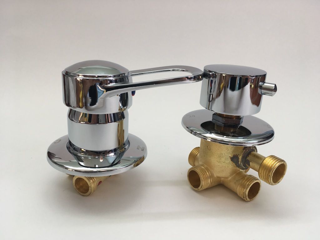 Это классический смеситель с переключением на 1 положение: он включает ручную лейку (обычный душ) и регулирует напор воды. Поставляется в сборе с монтажным креплением (прижимной гайкой), картриджем смешивания воды и ручкой. Подключение горячей и холодной воды выполнено под гайку 1/2 дюйма. Ручка смешивания воды и прижимная гайка — металлические с хромовым покрытием, корпус — латунный.