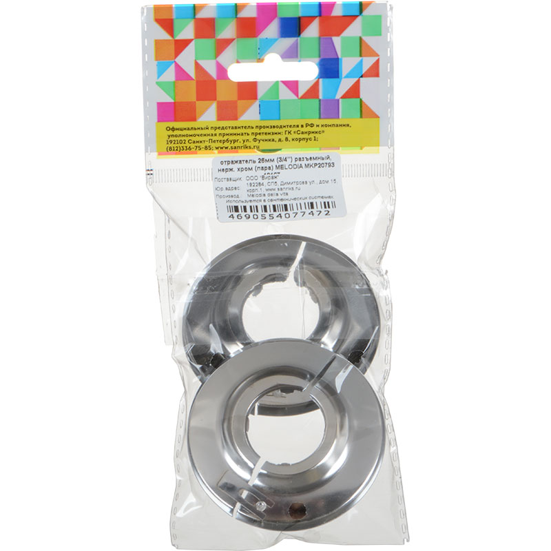 Отражатель 3/4" 26мм разъемный, нерж. хром (пара) 13мм MELODIA MKP20793