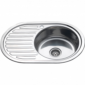Мойка врезная овальная 770*500мм, 0.6 мм, правая, Б/В, MELANA нержавейка