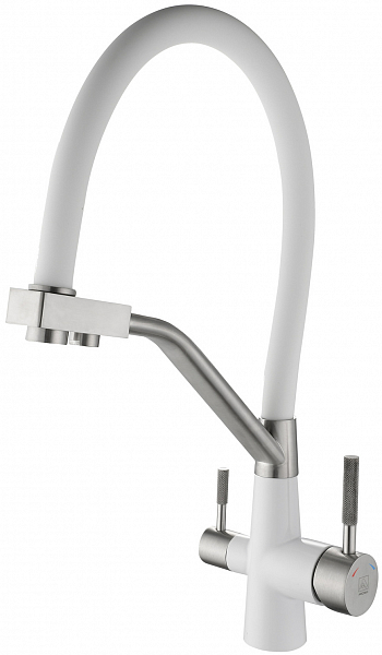 ARGO Смеситель для кухни набортный, SOLID под питьевую воду, гибкий, белый, однорычажный, d-35, нержавеющая сталь, монтаж - гайка, гибкая подводка 50 см
