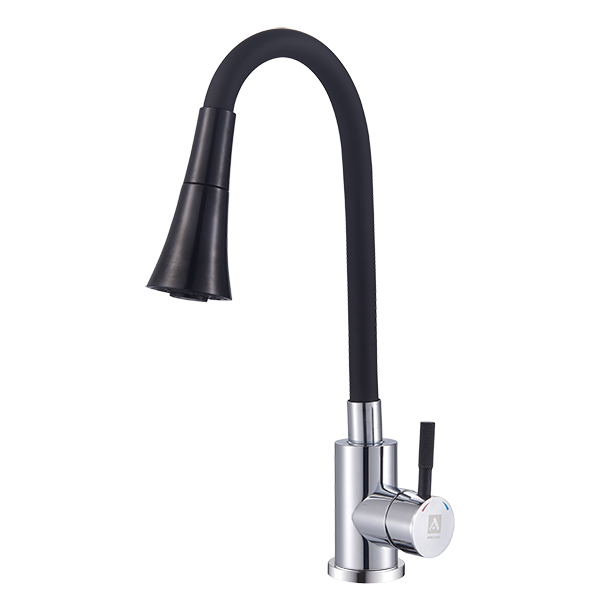 ARGO 3512 SOLID black Смеситель для кухни набортный, двухпозиционный, хром/чёрный, пластичный излив, однорычажный, d-35, нержавеющая сталь, монтаж - гайка, гибкая подводка 50 см
