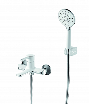 "ARGOTECH" Смеситель для ванны настенный 4005P ELAT, корпус хром/белый, однорычажный, d-40 латунь, с душевой гарнитурой