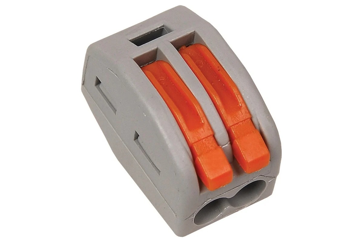 Чтобы соединить провода безопасно нужно использовать строительно-монтажную клемму IEK СМК 222-412. Она обеспечит правильное соединение и надежный контакт, а это значит – никаких коротких замыканий и возгораний изоляции. Одновременно изделие способно зажимать два медных или алюминиевых провода сечением до 4 кв.мм.