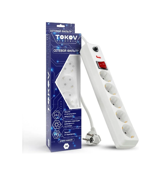 Удлинитель с сетевым фильтром 5х3м с заземл. с выкл. 16А с защ. от скачков напр. и перегрузок 3х1 белый TKE-C01-SF5-3-ZV