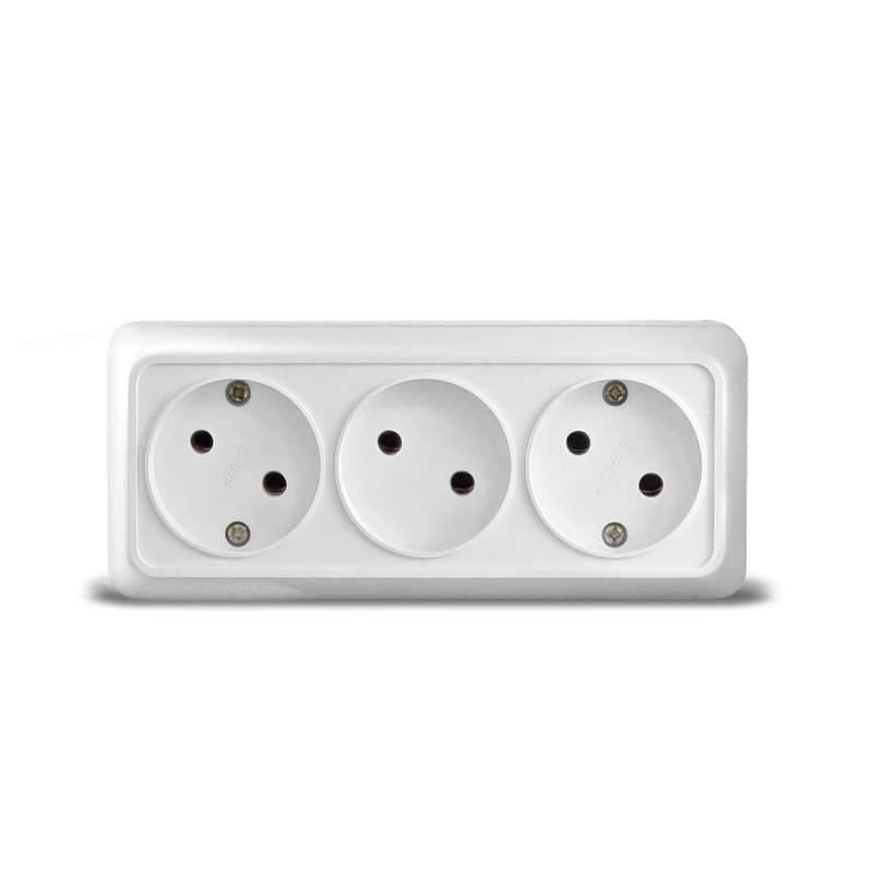 Розетка трехместная ОП Олимп 16А IP20 без заземл. бел. UNIVersal 1160