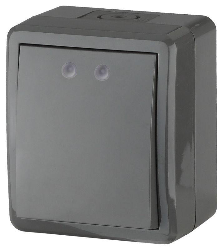 Выключатель влагозащищённый IP54 1-клавишный серии Эра Эксперт открытой уст. цвет серый 11-1401-03. Номинальные характеристики . Выключатель выполнен из качественного поликарбоната, оснащён уникальными винтовыми клеммами ЭКСПЕРТ для максимально качественного зажима кабеля в механизме.