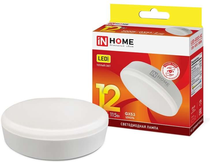 Лампа светодиодная LED-GX53-VC 12Вт 230В 3000К IN HOME 4690612020785