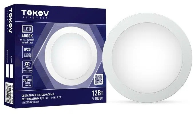 Светильник светодиодный ДВО-R1- 12-4K-IP20 170х18мм 12Вт 960лм 4000К IP20 TOKOV ELECTRIC TOK- R1-12-