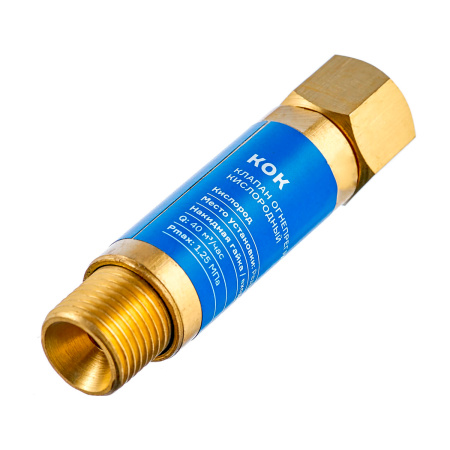 Клапан огнепреградительный кислородный КОК (на редуктор) М16х1,5 предназначен для защиты от противотока газа, а также для защиты от разрыва кислородного резинотканевого рукава и его возгорания при обратном ударе пламени.