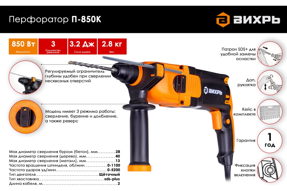 Реверс предусмотрен для легкого извлечения застрявшего бура