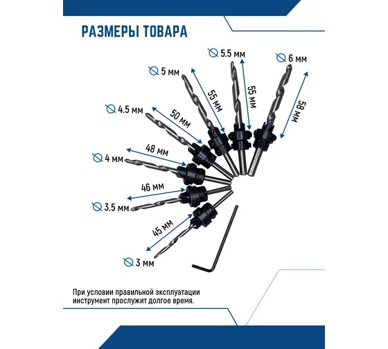 Набор сверл по дереву с зенкером и ограничителем 7 предметов 3-6 мм vertextools 0987-7 служит для обработки дерева, пластика, ПВХ. Подходит для создания различных углублений для потайного размещения крепежных изделий.