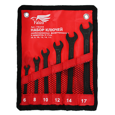 Набор ключей комб. фосфат. в сумке 6 пр., 6-17мм (6, 8, 10, 12, 14, 17) FALCO