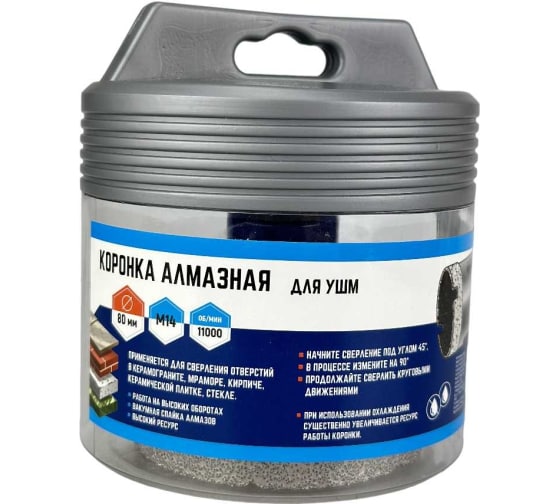 Коронка алмазная для УШМ vertextools применяется для сверления отверстий в керамограните, мраморе, кирпиче, керамической плитке, стекле.