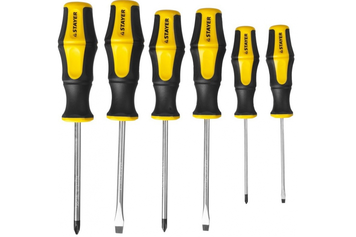 Набор отвёрток Cr-V, эргономичная двухкомпонентная рукоятка, 6 шт. STAYER "MASTER" HERCULES
