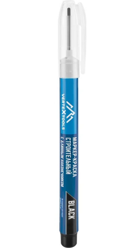 Маркер краска черный строительный vertextools с длинным наконечником 0021-02