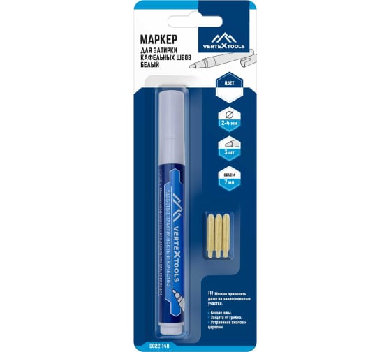 Маркер белый для затирки кафельных швов vertextools 0022-140