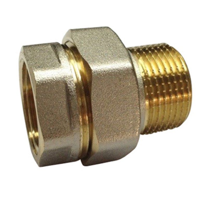 Американка латунная никелированная прямая, муфта-штуцер
