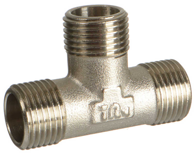 Тройник TERMA равнопроходной на 1/2" с наружной резьбой предназначен для подведения дополнительной ветки трубопровода. Изготовлен из горячепрессованной латуни с никелированным покрытием, номинальное рабочее давление от 25 бар, рабочий диапазон температуры от -20°C до +120°C.