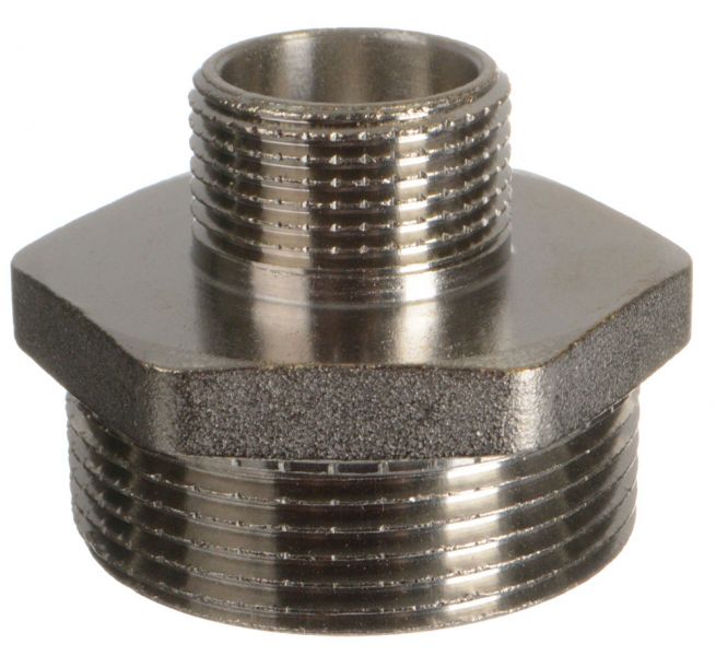 ниппель переходной TERMA 06247 изготовлен из горячепрессованной латуни с никелированным покрытием, присоединительный размер 3/4" на 1.1/2", резьба трубная цилиндрическая. Номинальное рабочее давление от 25 бар, рабочий диапазон температуры от -20°C до +150°C.