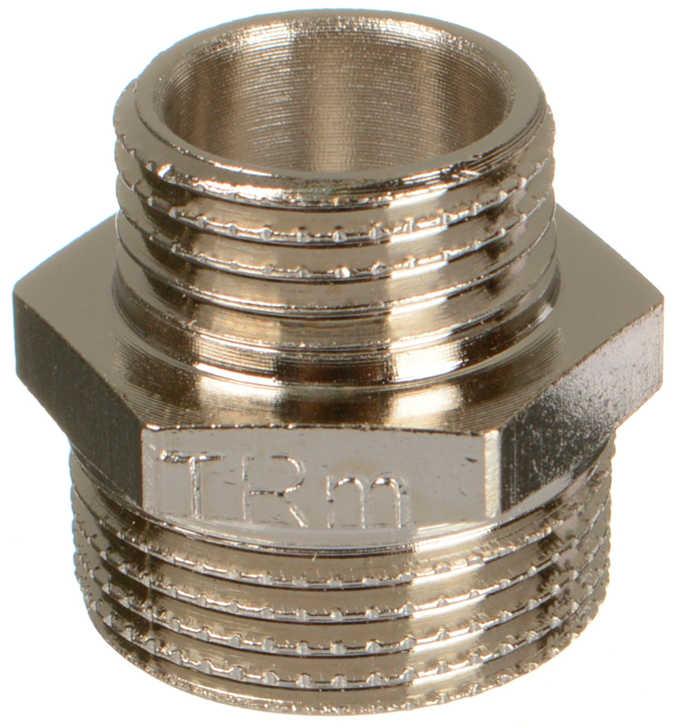 ниппель переходной TERMA 06015 изготовлен из горячепрессованной латуни с никелированным покрытием, присоединительный размер 1" на 1.1/2", резьба трубная цилиндрическая. Номинальное рабочее давление от 25 бар, рабочий диапазон температуры от -20°C до +150°C.