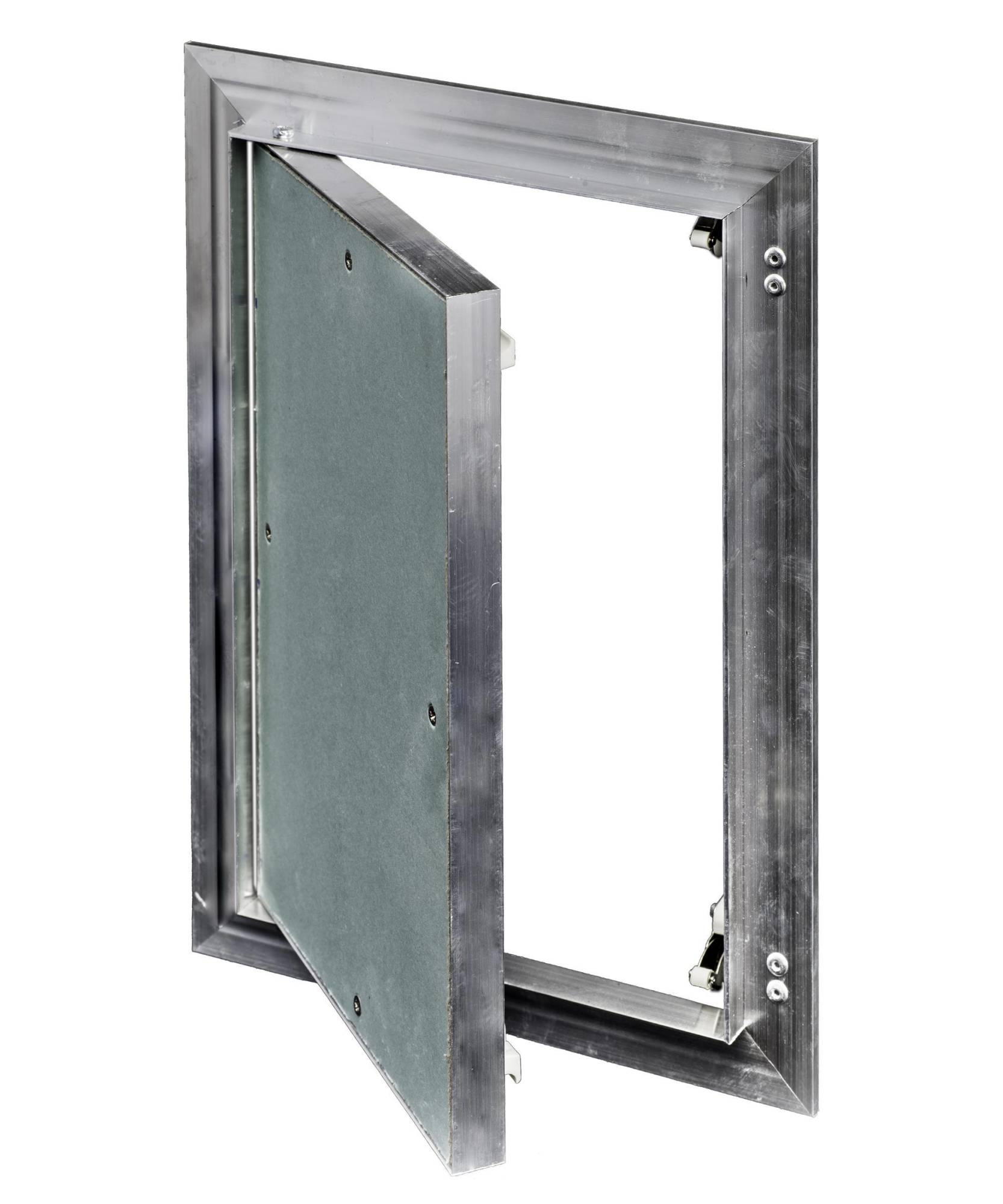 Люк под покраску под гипсокартон EVENT ЛПШУ 200х200 используются в качестве смотровых устройств в случае, если необходимо осуществлять визуальный контроль над состоянием скрытых коммуникаций и инженерных систем, люки технологические алюминиевые устанавливаются в гипсокартонные перегородки или капитальные стены для обеспечения доступа к скрытым элементам управления (краны, вентили, задвижки и т.д.) и измерения (манометры, счетчики и т.д.). Рама люка и рама дверцы изготовлены из специального алюминиевого профиля. Монтажная рама предполагает крепление к проему стены или каркасу. Заполнение двери люка - влагостойкий гипсокартон. Защёлки двери люка типа "Touch Catch" Люки алюминиевые обладают наличниками, которые скрывают имеющиеся неровности посадочного отверстия. Люки алюминиевые сантехнические можно использовать под покраску и отделку различными материалами.