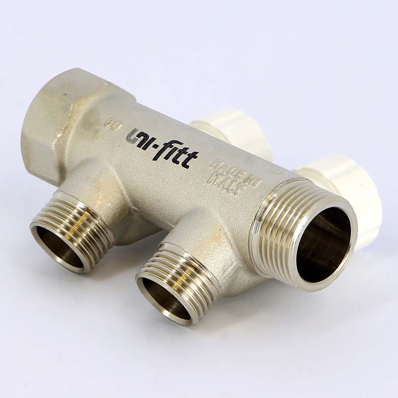 Коллектор НВ 3/4" 2 выхода 1/2" нар. 40мм с вентилями никелированный UNI-FITT