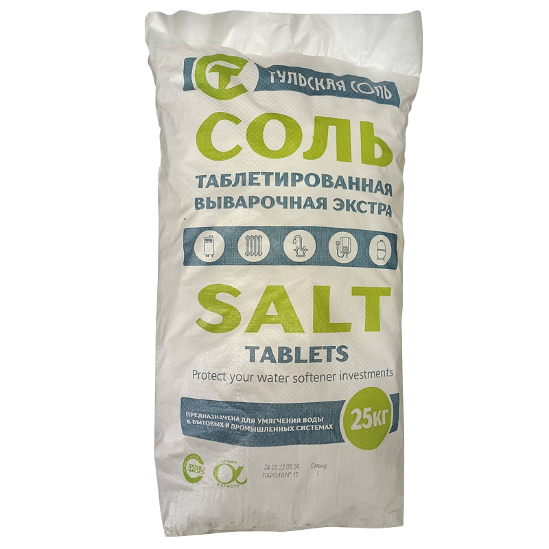 Соль таблетированная (NaCl) используется для восстановления ионообменных смол в установках умягчения воды. Благодаря специальной обработке, высокому качеству очистки гарантируется оптимальный контакт её с водой и равномерное растворение.