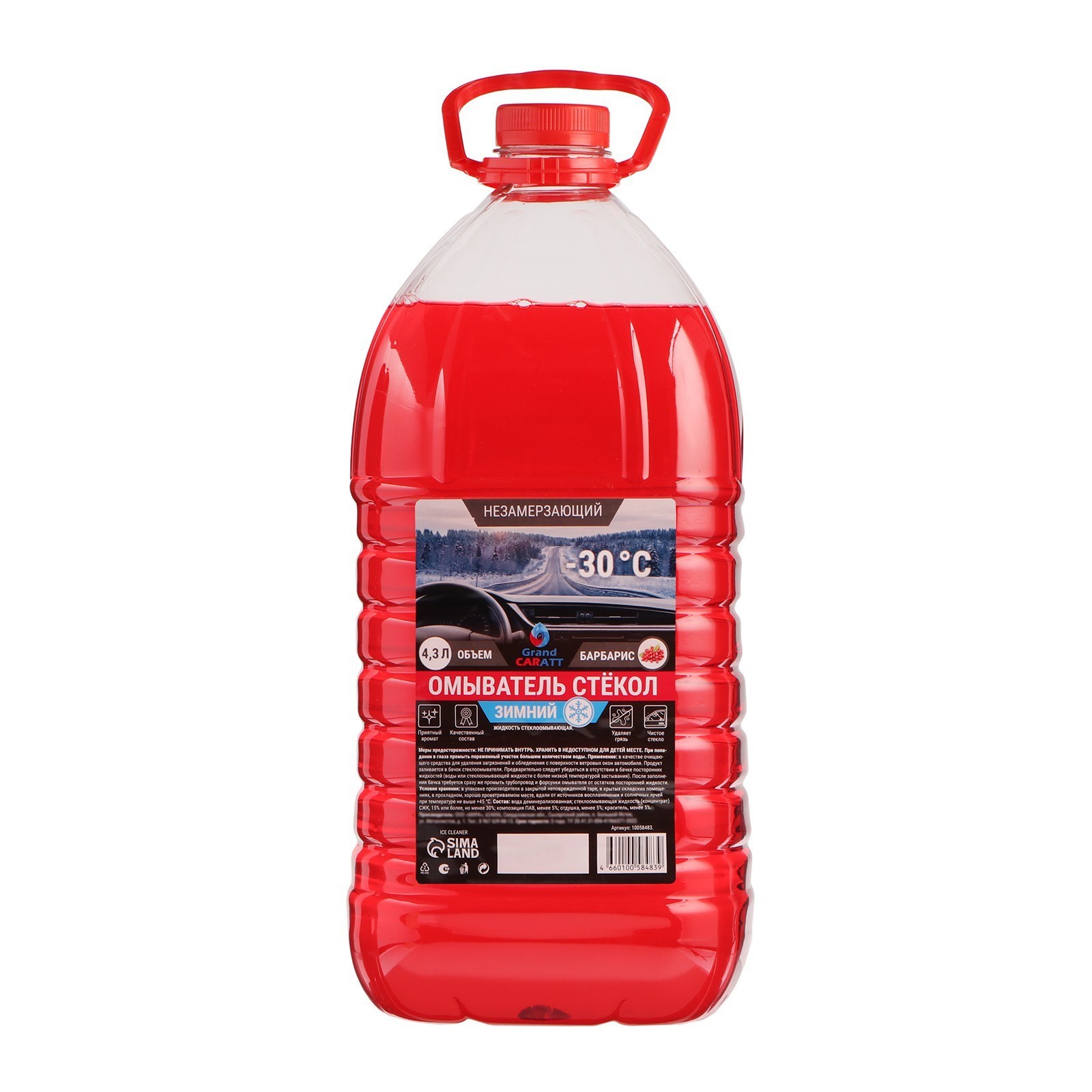 Жидкость стеклоомывающая зимняя Grand Caratt -20 С, 4,3 л – средство для омывания стекол автомобиля в зимний период. Легко удаляет снег, изморозь и загрязнения, защищает стеклоочистители от обледенения и растрескивания, а стекла – от абразивного износа. Не оказывает негативного влияния на ЛКП, резиновые и металлические детали автомобиля.