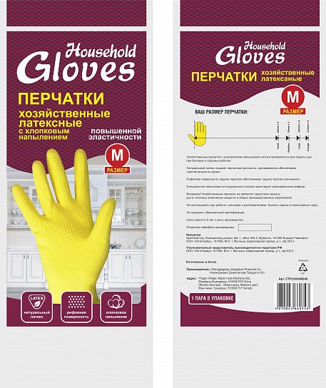 Перчатки латексные Хозяйка 30гр M с ХБ напылением*12/240 (Круг-Упак)