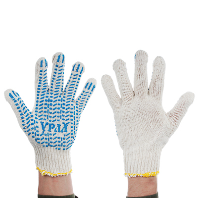 Перчатки вязаные ЛЮКС х/б с ПВХ напылением "Протектор" 5 нитей, Х-нить, 62 гр