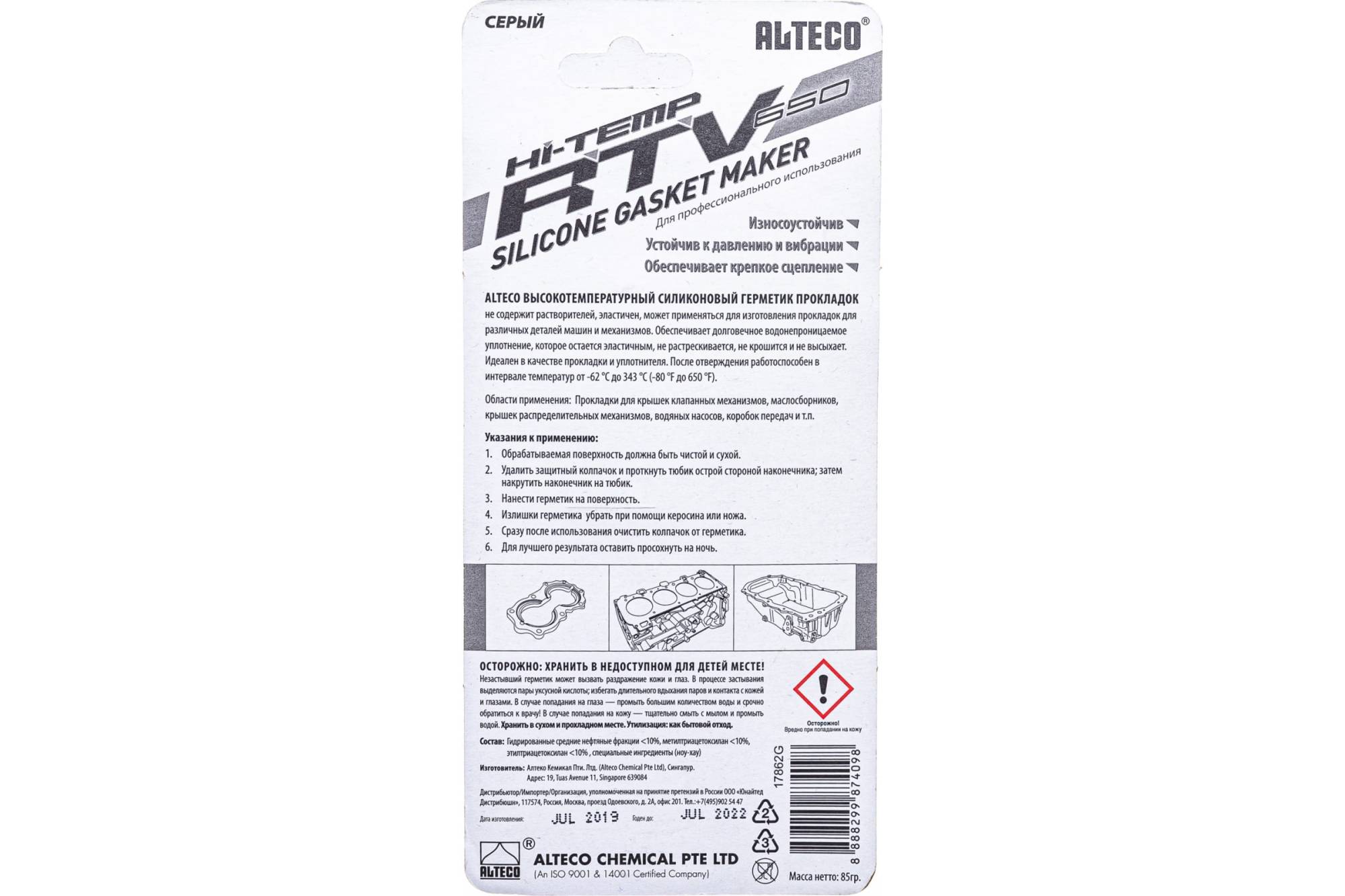Высокотемпературный силиконовый герметик прокладок ALTECO СЕРЫЙ 85гр 87409J00