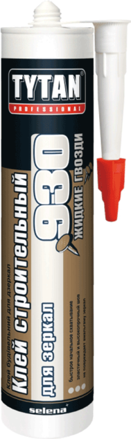 Клей Tytan Professional №930 - специализированный клей на базе синтетического каучука и смол. Рекомендуется для приклеивания зеркал к большинству поверхностей, таких как бетон, дерево, штукатурка, керамическая плитка и полистирол. Не повреждает амальгаму зеркал, образует эластичный и прочный шов, обладает отличной адгезией.