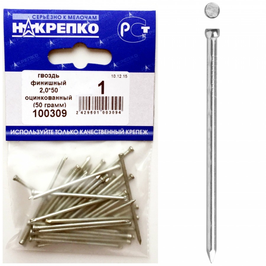Гвоздь финишный оцинкованный 2,0x50мм (50 грамм) 100309