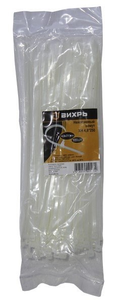 Хомут нейлоновый 4,8x250 белый (100шт.) ВИХРЬ