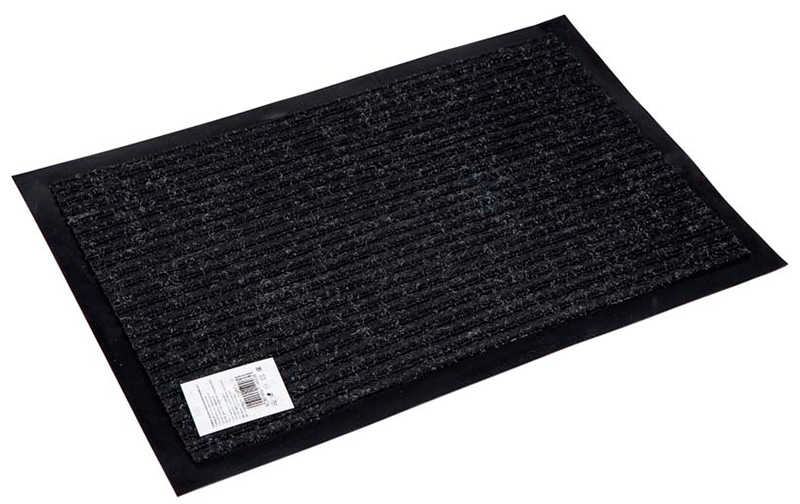 Основанием коврика является подложка из ПВХ толщиной 1,2 мм, рабочая поверхность - ворс высотой 7 мм из 100% полиэстера. Коврик черного цвета, имеет размеры 90*150 см и двухполосный рельеф ворса, что позволяет более эффективно счищать грязь с подошвы обуви.