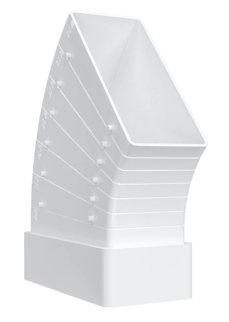 Колена разноугловые горизонтальные плоские КРП применяются для соединения воздуховодов соответствующего сечения под углом от 3° до 48°. В зависимости от выбранного угла одна сторона соединителя подрезается. C каналами соответствующего сечения соединяются напрямую.